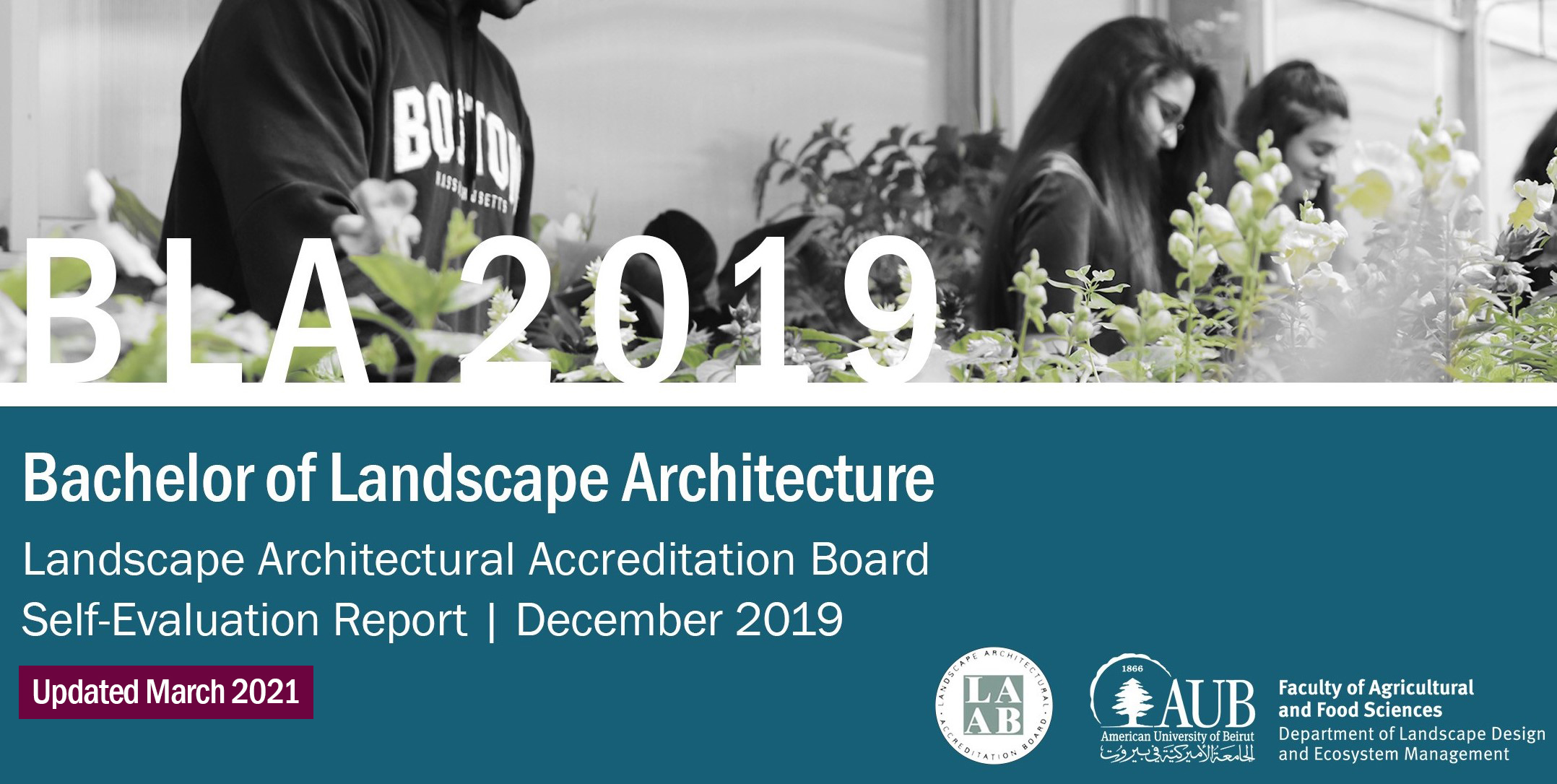 The LDEM department had a virtual accreditation visit of its undergraduate Landscape Architecture program (BLA) from 29 March to 1 April, 2021. This virtual visit replaced the face to face one which was planned for Spring 2019/2020 and which was postponed due to the COVID-19 pandemic crisis. The virtual visit was a success, and the BLA program received accreditation for 6 years (maximum allowable time) and became the first program to receive LAAB/ASLA accreditation outside the USA, worldwide.