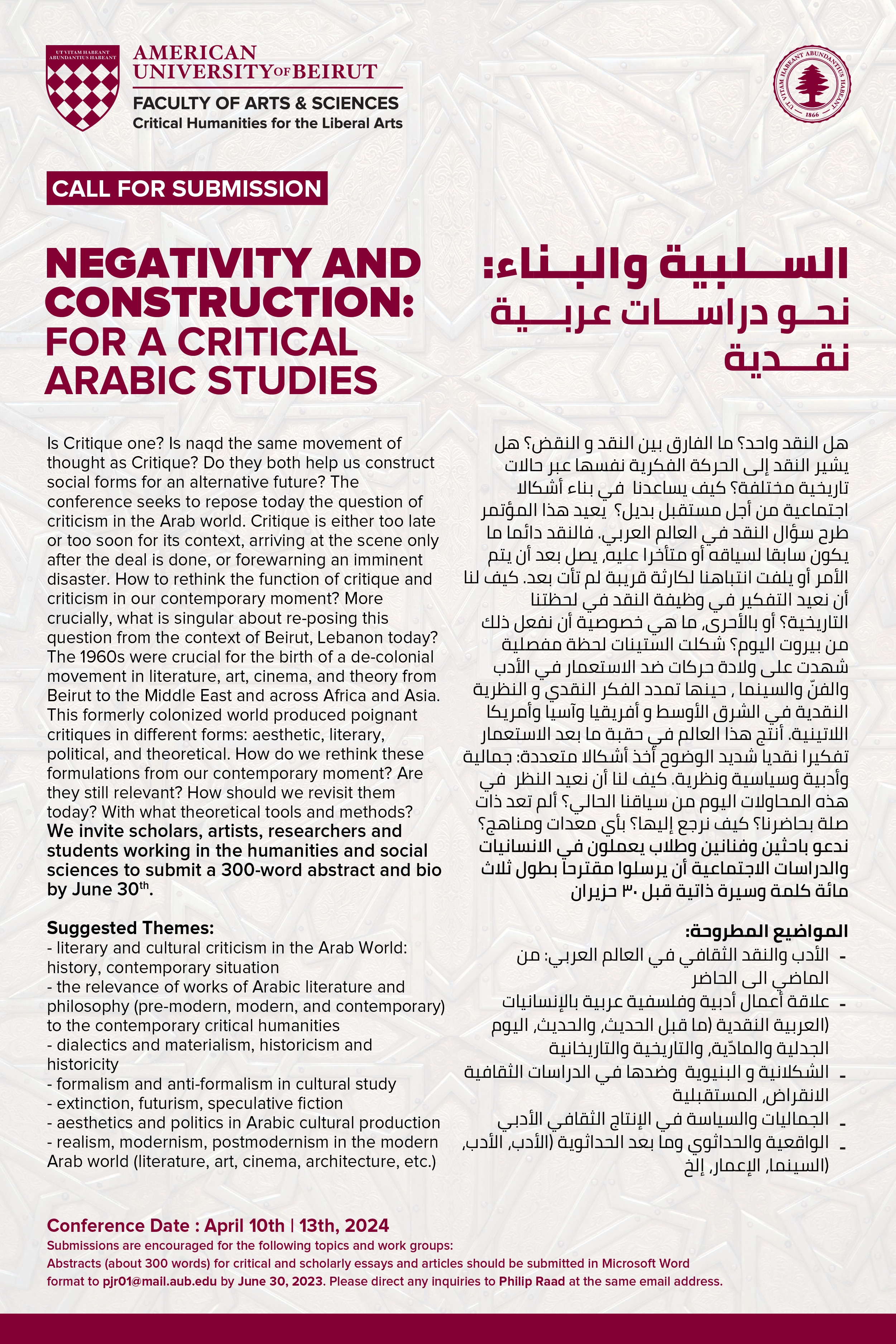 Written permission is needed to copy or disseminate all or part of the materials on the AUB website.