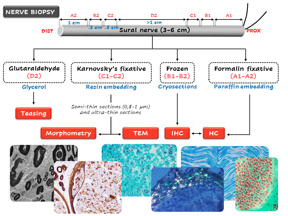 2. Nerve BiopsiesNerve evaluation of paraffin and frozen sections using histological, histochemical and immunohistochemical analysis.