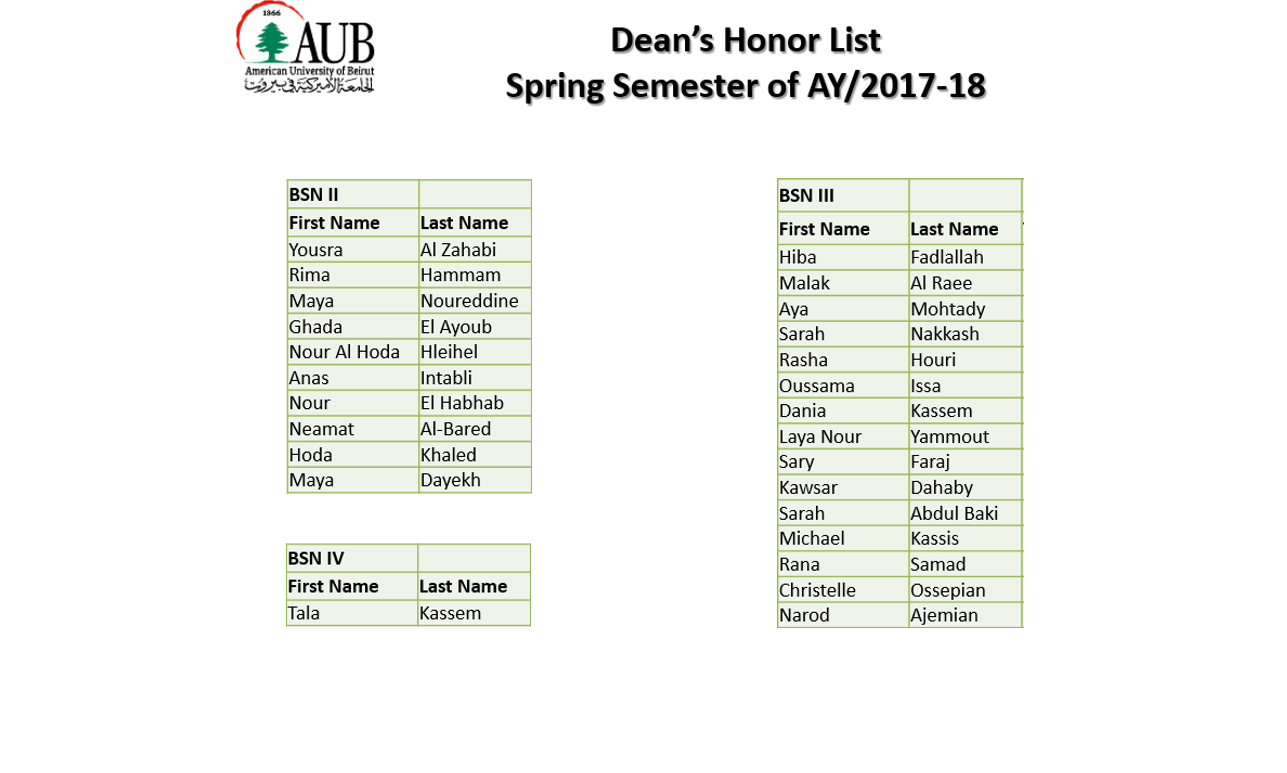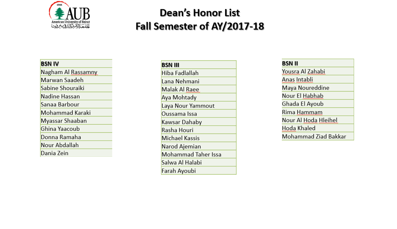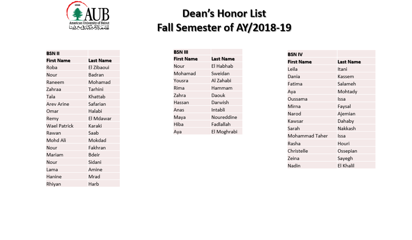 Dean's Honor List Section2 ContentFall Semester AY 2018-19Spring Semester AY 2017-18Fall Semester AY 2017-18Spring Semester AY 2016-17