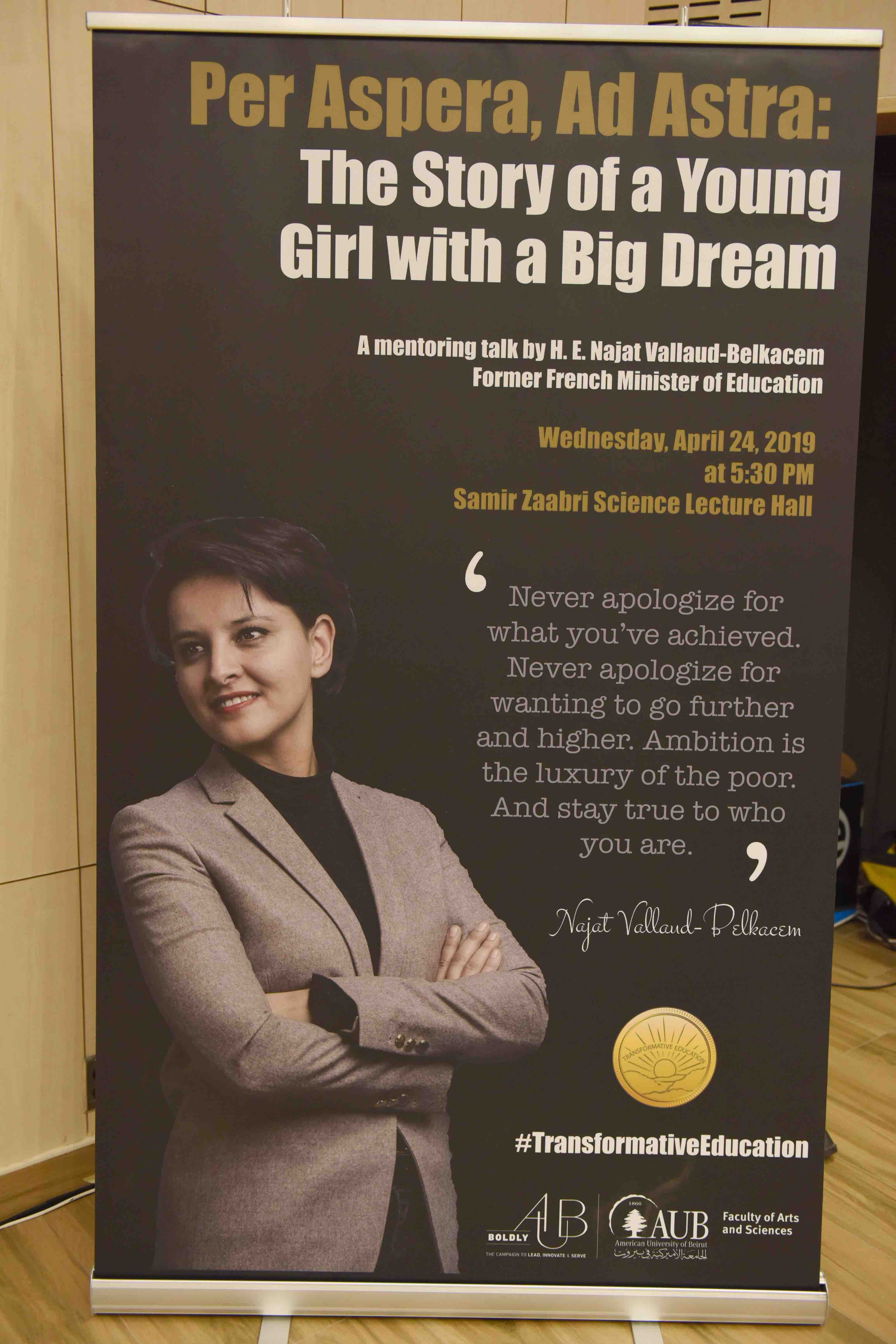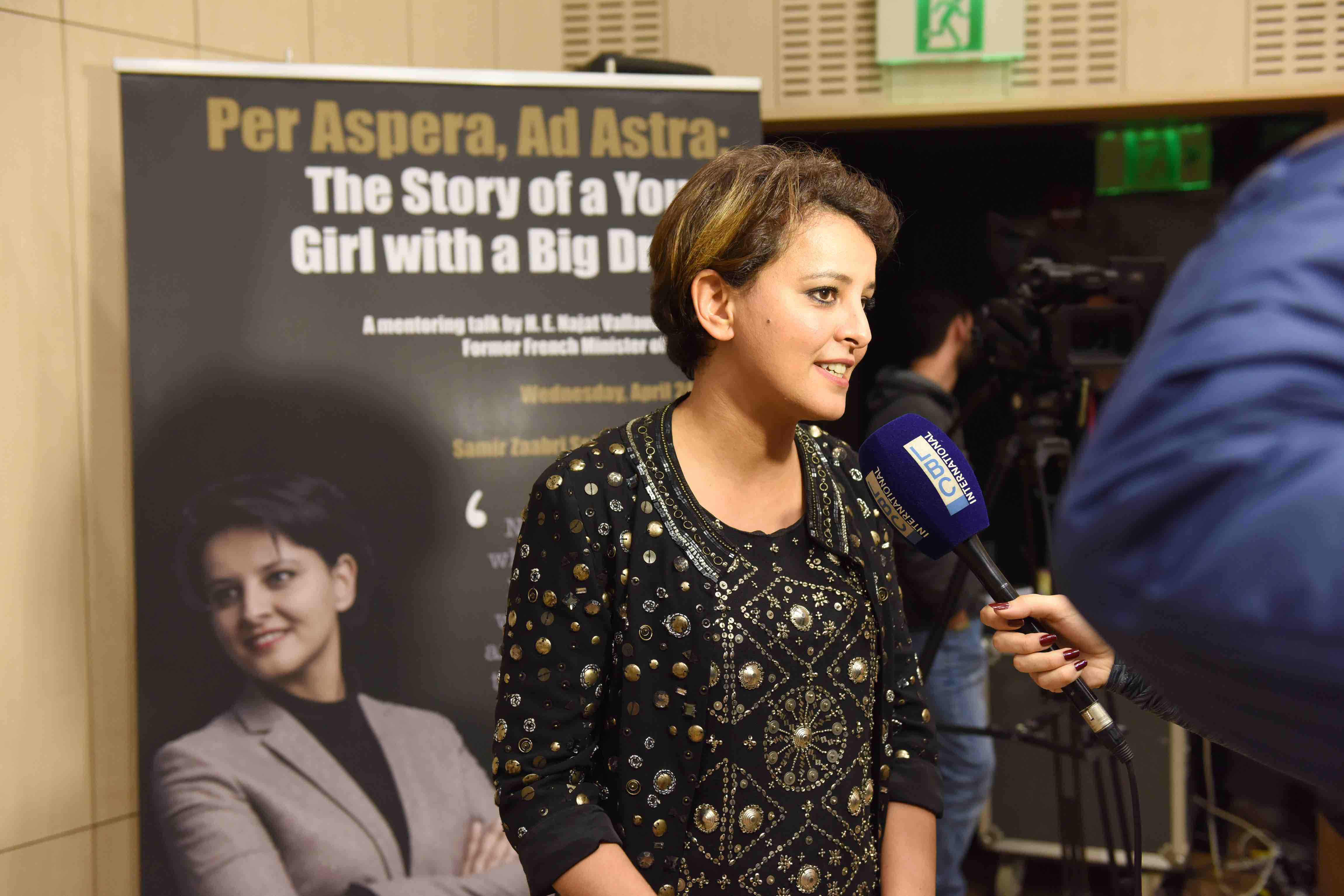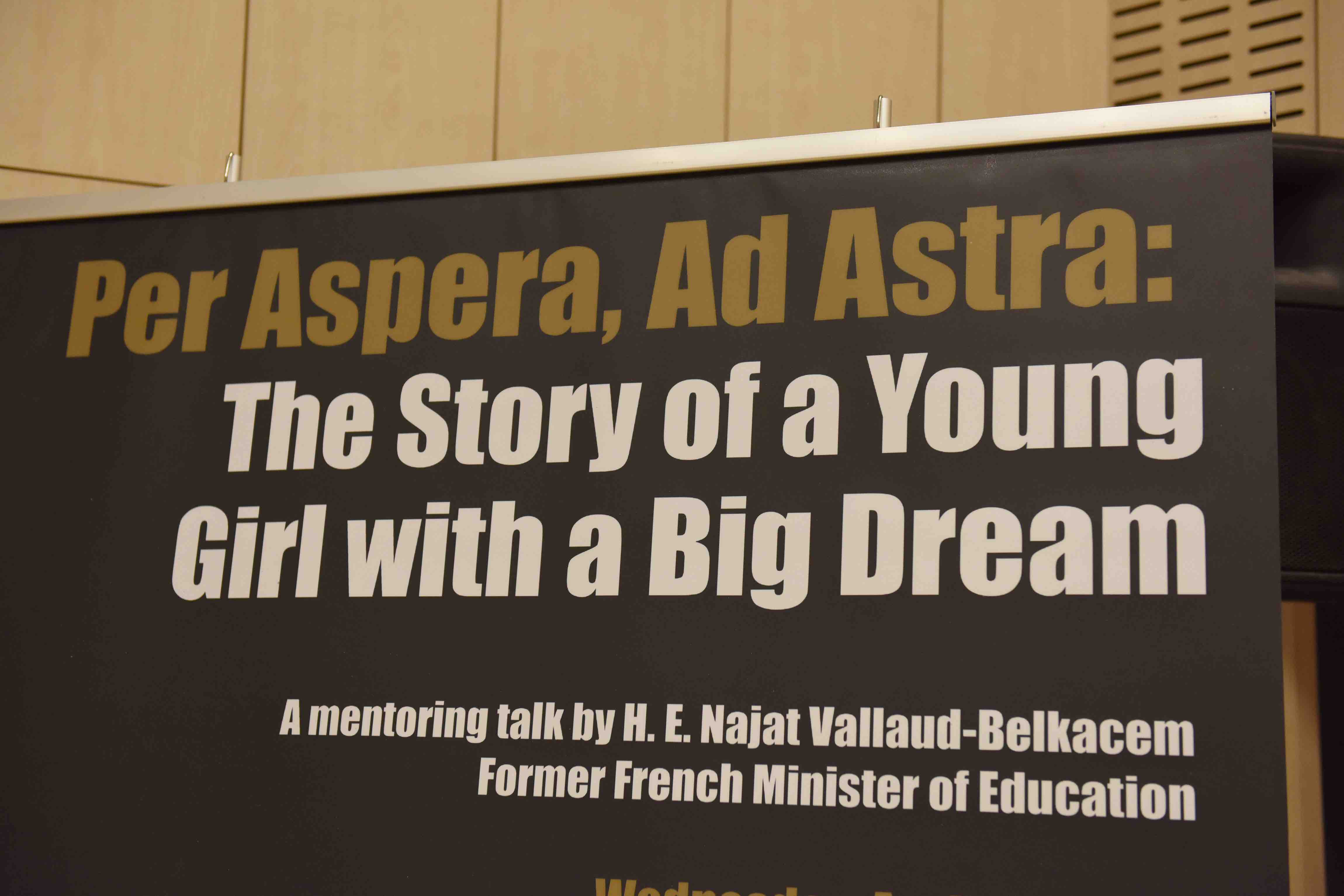 On Apr 24, 2019, Former French Minister of Education H. E. Najat Vallaud-Belkacem gave a mentoring talk entitled, “Per Aspera, Ad Astra:  The story of a young girl with a big dream”.