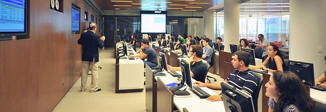 The Trading room aims to assist students, faculty and our financial community to have an overall understanding of the growing flow of financial data and its impact on financial markets and to develop and enhance the trading skills of students in stocks, futures, options, currencies and bonds. The trading room also provides help for students with the material covered in introductory finance courses, Business Finance and Financial Management. While the trading room staff can help students with learning the material, staff members are not permitted to provide students with answers to graded homework or take-home tests. Academic activities supported by the trading room include, but are not limited to, classroom instruction, video conferences, special presentation/events, data-feed workshops and simulation trading games. As a focal point for finance programs at the master’s and undergraduate levels, the trading room also serves as a test bed for the creation of innovative teaching techniques for all levels of education.